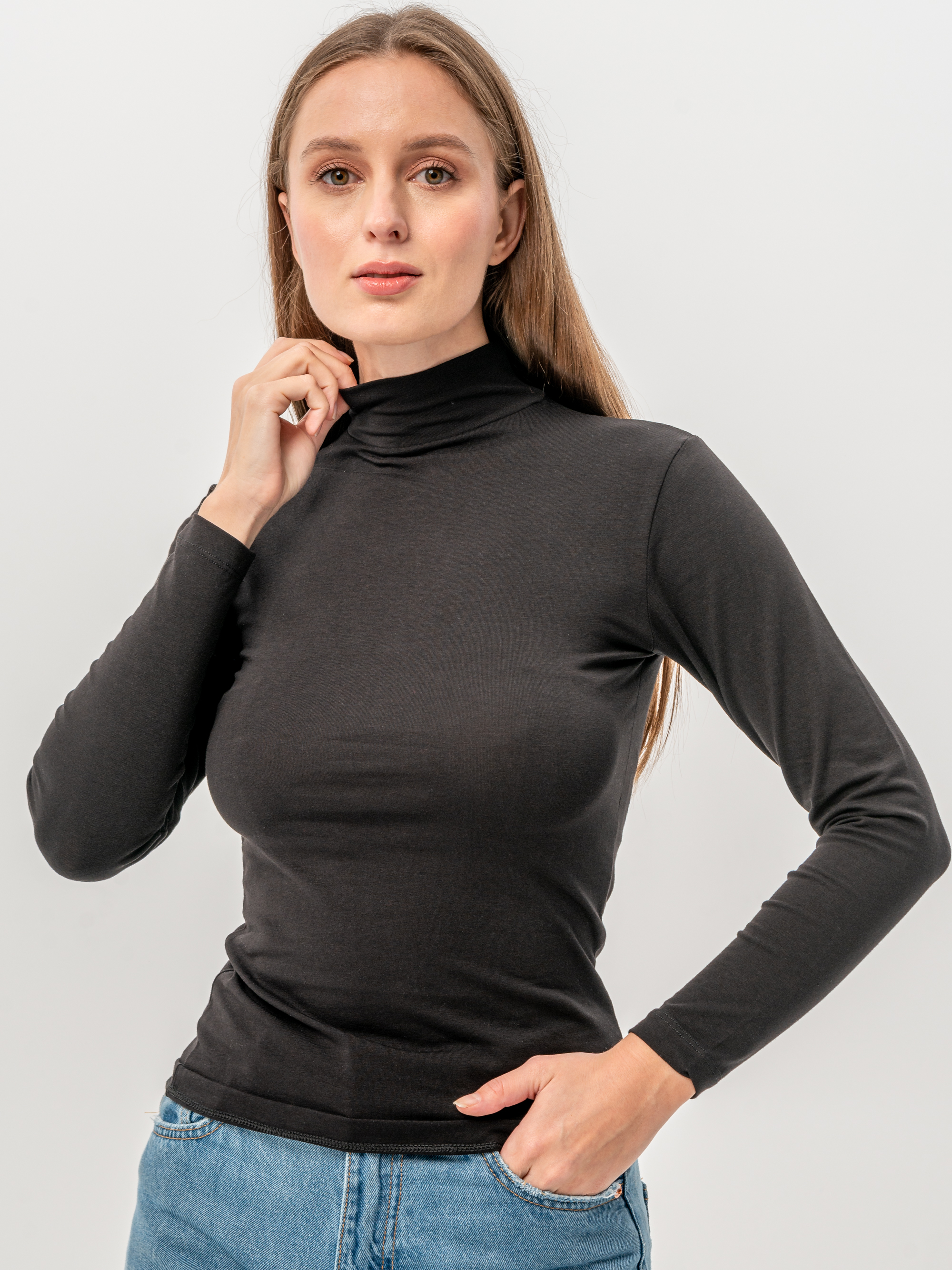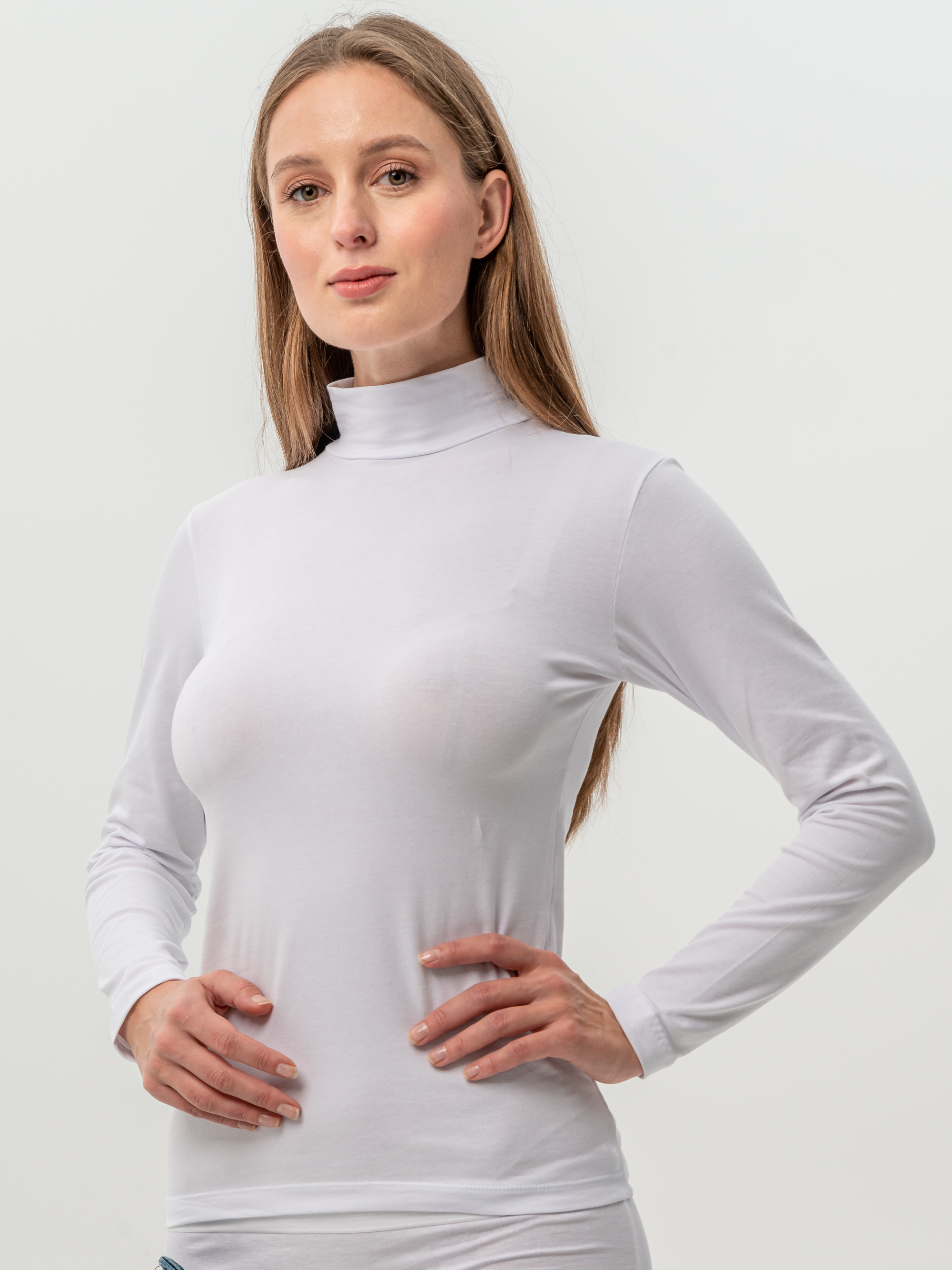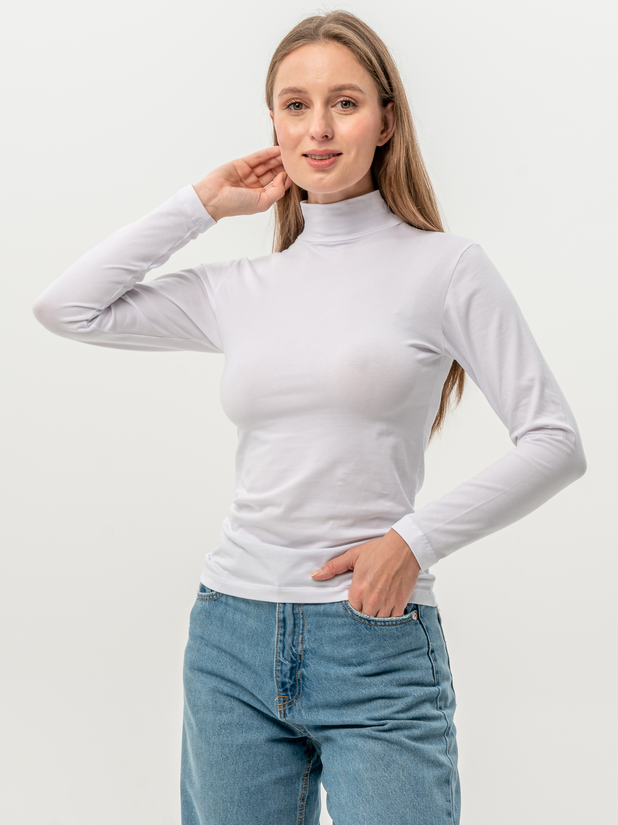 Женский лонгслив с горлом — это сочетание лаконичного стиля и универсальности, которое делает его идеальным элементом базового гардероба. Модель выполнена из хлопкового материала, благодаря чему она остается мягкой и дышащей даже при длительном ношении. Гладкая текстура трикотажа приятна к телу, не вызывает раздражения и не скатывается. Тонкая ткань с добавлением эластана не деформируется и сохраняет мягкость даже после многократных стирок. Высокая стойка водолазки придает элегантность, а длинные рукава защищают руки в прохладные дни. Приталенная посадка аккуратно подчеркивает фигуру.