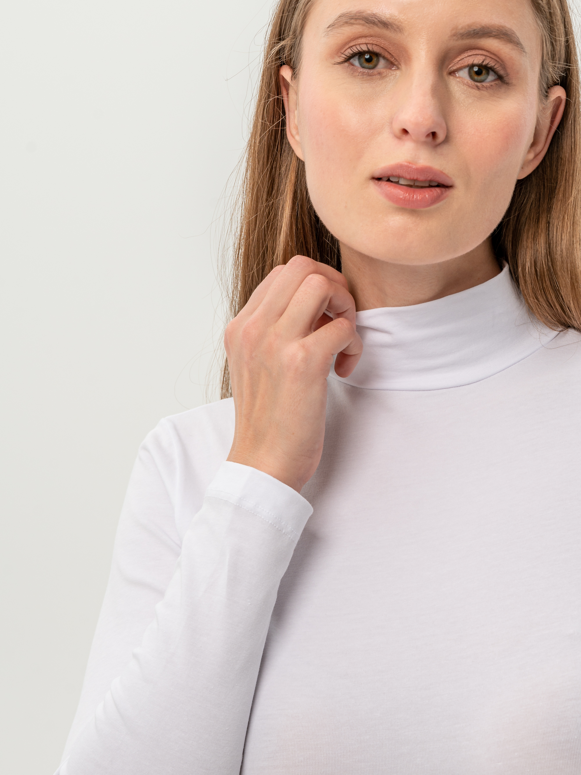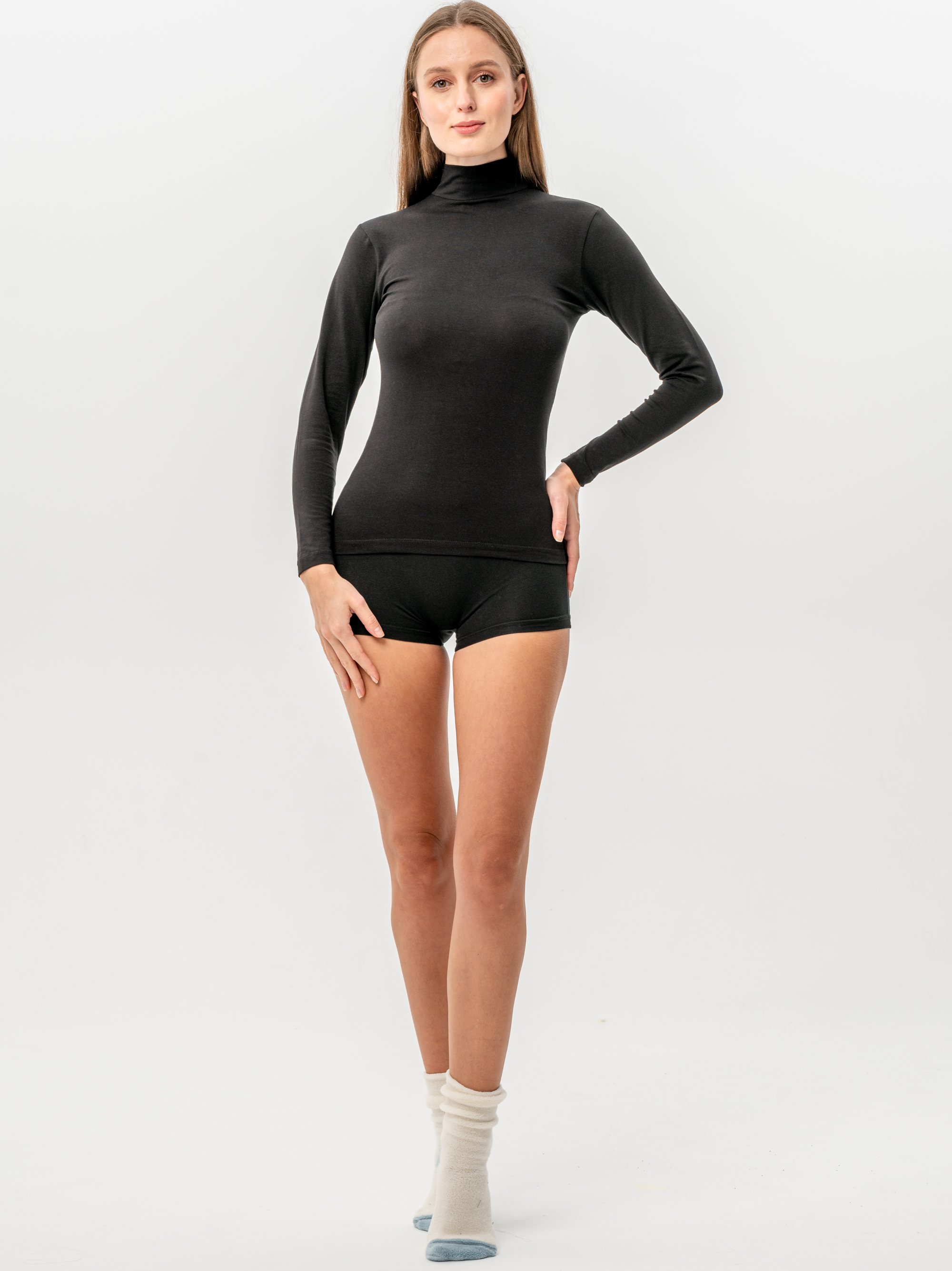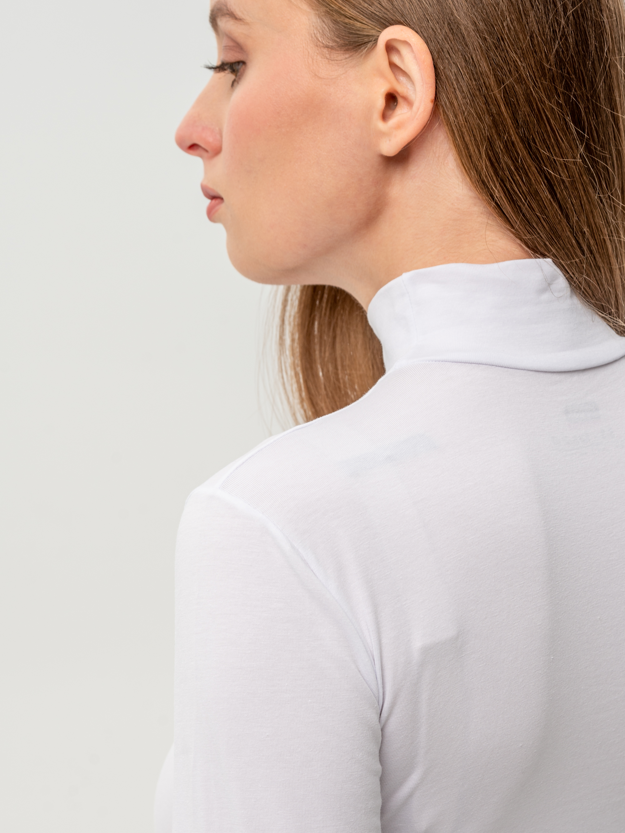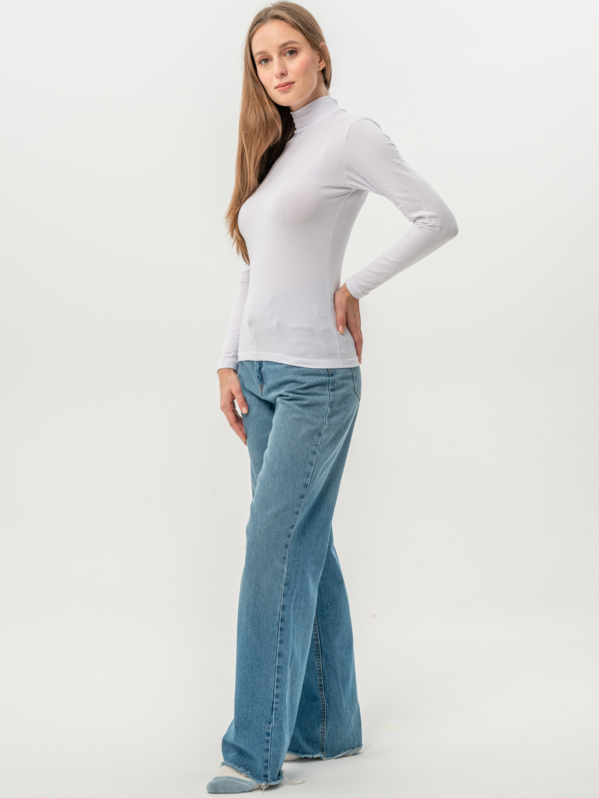 Женский лонгслив с горлом — это сочетание лаконичного стиля и универсальности, которое делает его идеальным элементом базового гардероба. Модель выполнена из хлопкового материала, благодаря чему она остается мягкой и дышащей даже при длительном ношении. Гладкая текстура трикотажа приятна к телу, не вызывает раздражения и не скатывается. Тонкая ткань с добавлением эластана не деформируется и сохраняет мягкость даже после многократных стирок. Высокая стойка водолазки придает элегантность, а длинные рукава защищают руки в прохладные дни. Приталенная посадка аккуратно подчеркивает фигуру.